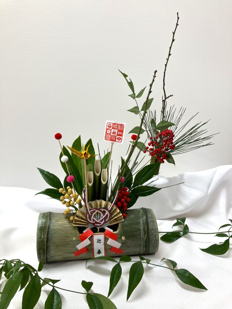 メインの竹をはじめ、南天や松、つるしば